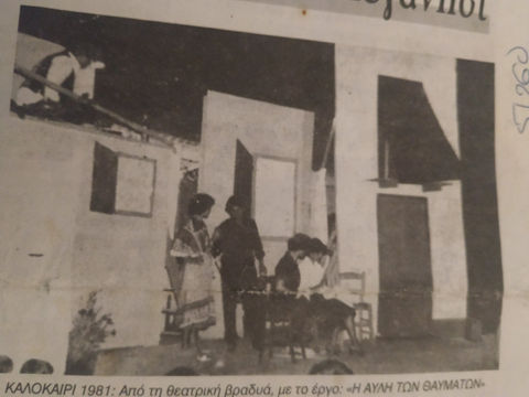 During the dictatorship, theatrical activity ceased due to restrictions requiring special ministry permits. However, students ignored these decrees and, with the local authorities’ tolerance, staged *The Thief is Shouting* by Psathas in Spartochori during the summer.